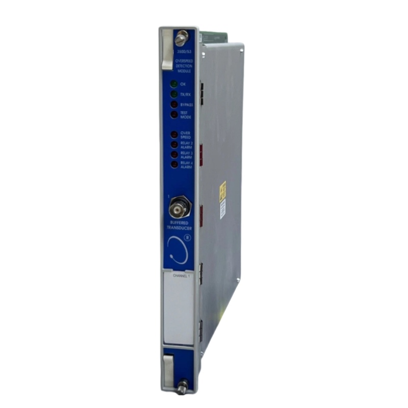 Bently Nevada 3500-53(常见型号如 133388-01 或 3500/53M-03-00)是一款高速转速监测模块,专门设计用于监测涡轮机、压缩机、发电机等设备的转速,并在超过预设阈值时触发超速保护。它通常与 3500 系列的信号调理器(如 3500/01、3500/02)配合使用,以实现的振动与转速监控。